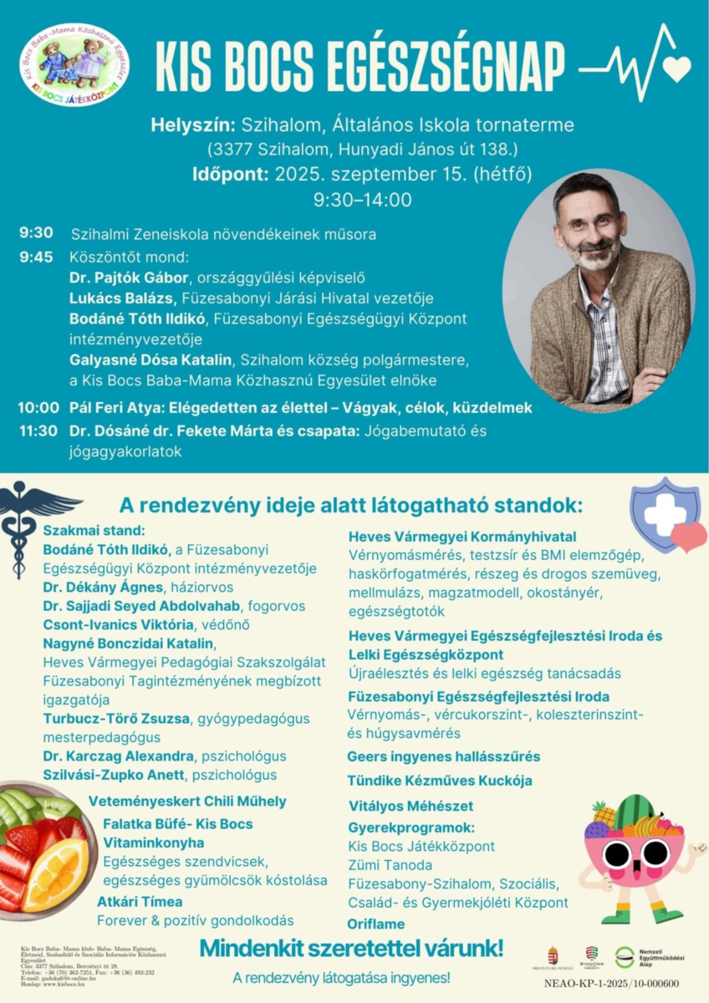 Szeptember 15-én, hétfőn egész napos közösségi programra várják az érdeklődőket Szihalmon: megrendezik a Kis Bocs Egészségnapot, amely ingyenes szűrésekkel, előadásokkal, bemutatókkal és játékos programokkal kínál értékes kikapcsolódást kicsiknek és nagyoknak.
