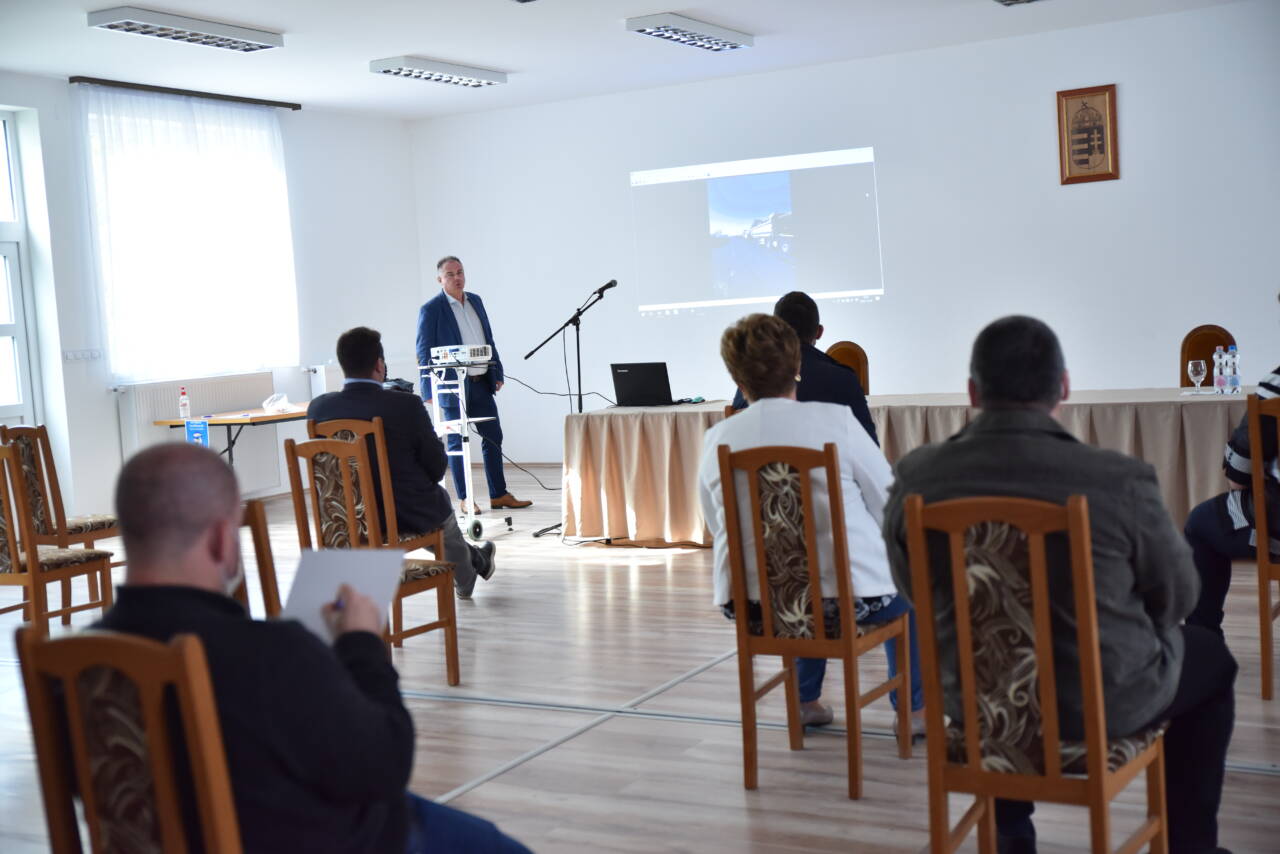 Nagy Zsolt a projekt műszaki ellenőre részletezte a pályázat jelenlegi állapotát. Mint mondta 2017-ben nyerte el a város a pályázatot, a közbeszerzés 2019 őszén indult. A Kerecsendi út felújítása 1,2 km hosszan 2020 áprilisában kezdődött meg, ezt követte a zöldmezős beruházás részeként a bekötőút építése és a közművesítés. Ez utóbbiban 220 méter új utat építettek, kétszer 3,25 méter szélességben, összesen 2500 tonna földet mozgattak meg, 3700 tonna ágyazati anyagot építtek be és két réteg aszfaltot húztak rá, valamint megtörtént a teljes közművesítés.