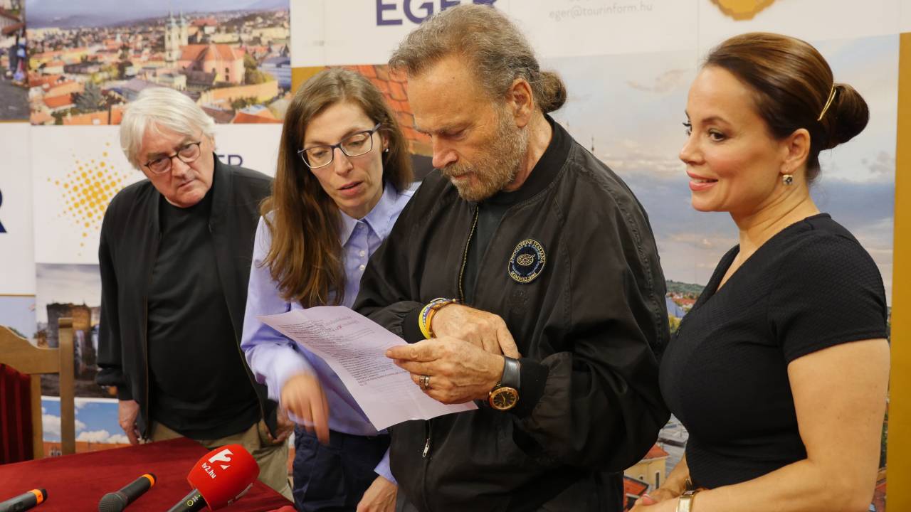 Pénteken az egri Városházán sajtó nyilvános beszélgetésre várták a színészt, Koltai Lajos operatőr – rendező, Nyitrai Zsolt országgyűlési képviselő és Habis László polgármester társaságában.