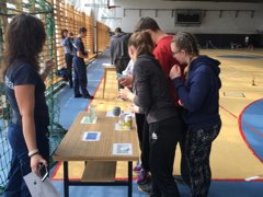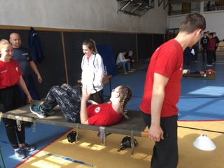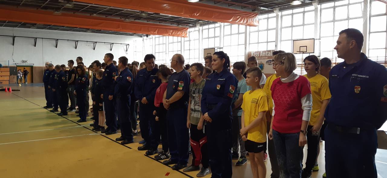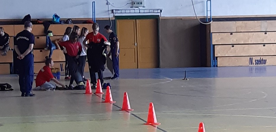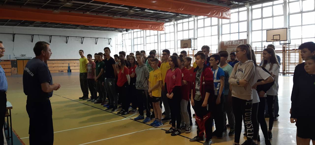 A hideg, esős időjárásra tekintettel idén rendhagyó módon a gyöngyösi Kálváriaparti Sport és Általános Iskola tornatermében építették ki az állomásokat és versenypályákat a szervezők. Nyolc óra után folyamatosan érkeztek a versenyző csapatok és izgulva készülődtek a megmérettetésre.  Ezen a versenyen a múlt héten megtartott helyi fordulók legjobb hat általános és hat középiskolás csapata mérte össze tudását, ügyességét és gyorsaságát. Szemmel látható volt a verseny során, hogy a gyerekek alaposan felkészültek a feladatokra, voltak olyan versenyzők, akik már évek óta visszajárnak, rutinos versenyzők.
