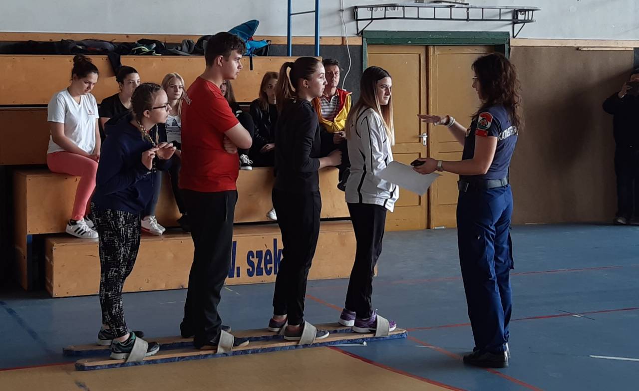 Tizenkettő állomáshelyen kellett eredményesen teljesíteni a tanulóknak. Feladat volt egy katasztrófavédelmi kérdéseket tartalmazó teszt kitöltése, ellennyomó medence építése homokzsákokból, elsötétített gázálarcban tárgyak összeszedése irányítással, veszélyes áruk szállítására szolgáló szimbólum kirakása, mentőkötél felszedése, tűzoltó eszközök felismerése, szelektív hulladék összeszedése sílécbe bújva, szakszavakkal activity játék, váltófutás tűzoltó védőruhában, elsősegélynyújtás. A megmérettetésen mindegyik csapat egészséges versenyszellemben, kifejezetten jól teljesített. A helyezések az alábbiak szerint alakultak: