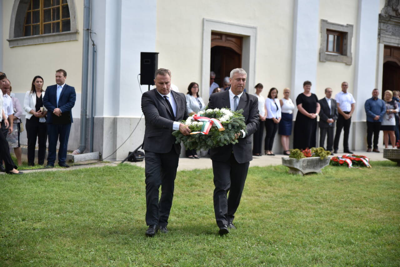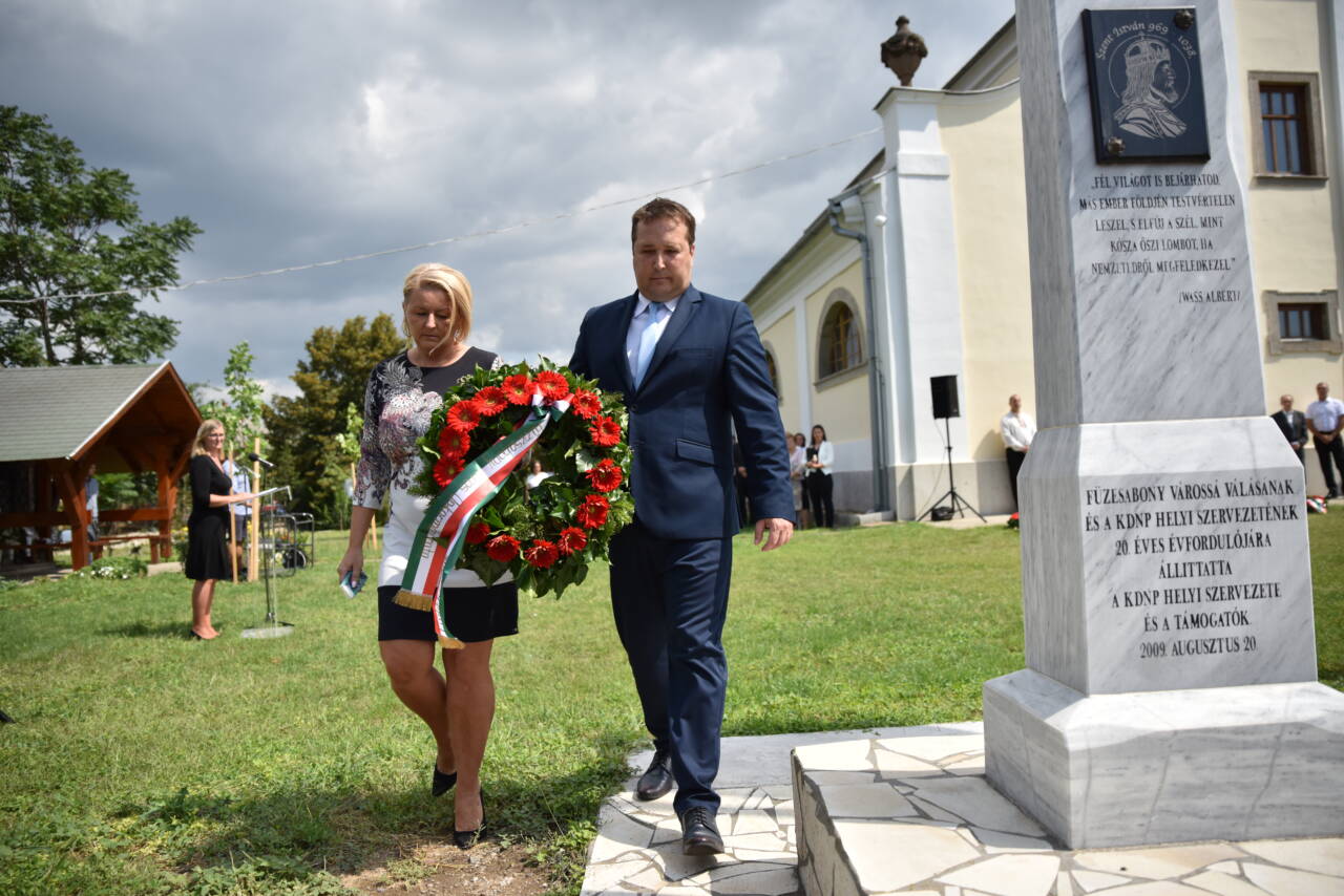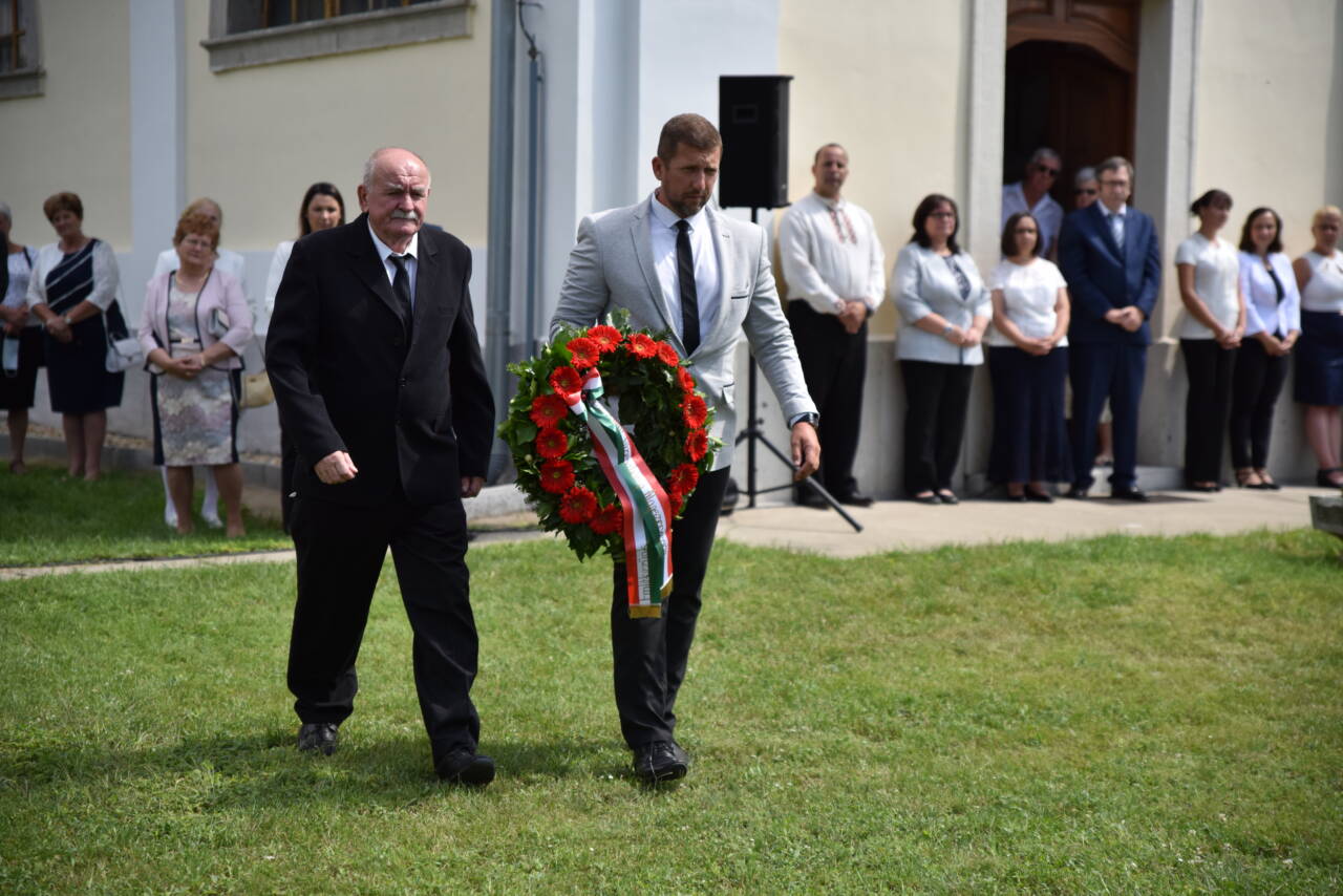 Az ünnep a templomkertben folytatódott, ahol Nagy Csaba polgármester beszédében magasztalta Szent István életét és cselekedeteit a magyarság fennmaradásáért. Kiemelte: Elmondhatjuk, királyunk igazi sziklára épített házat, mert a nemzet, azóta is él és tovább folytatja a háznak az építését.