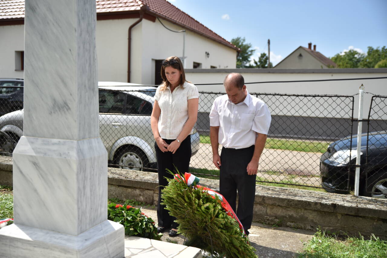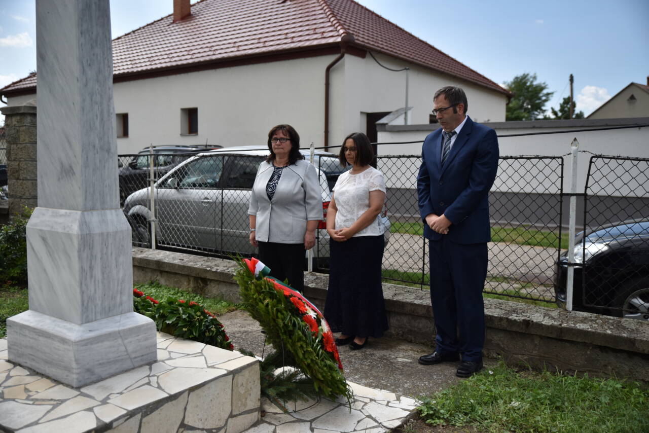 Az ünnepi gondolatok koszorút helyezett el az önkormányzat, intézmények és a pártok képviselői.
