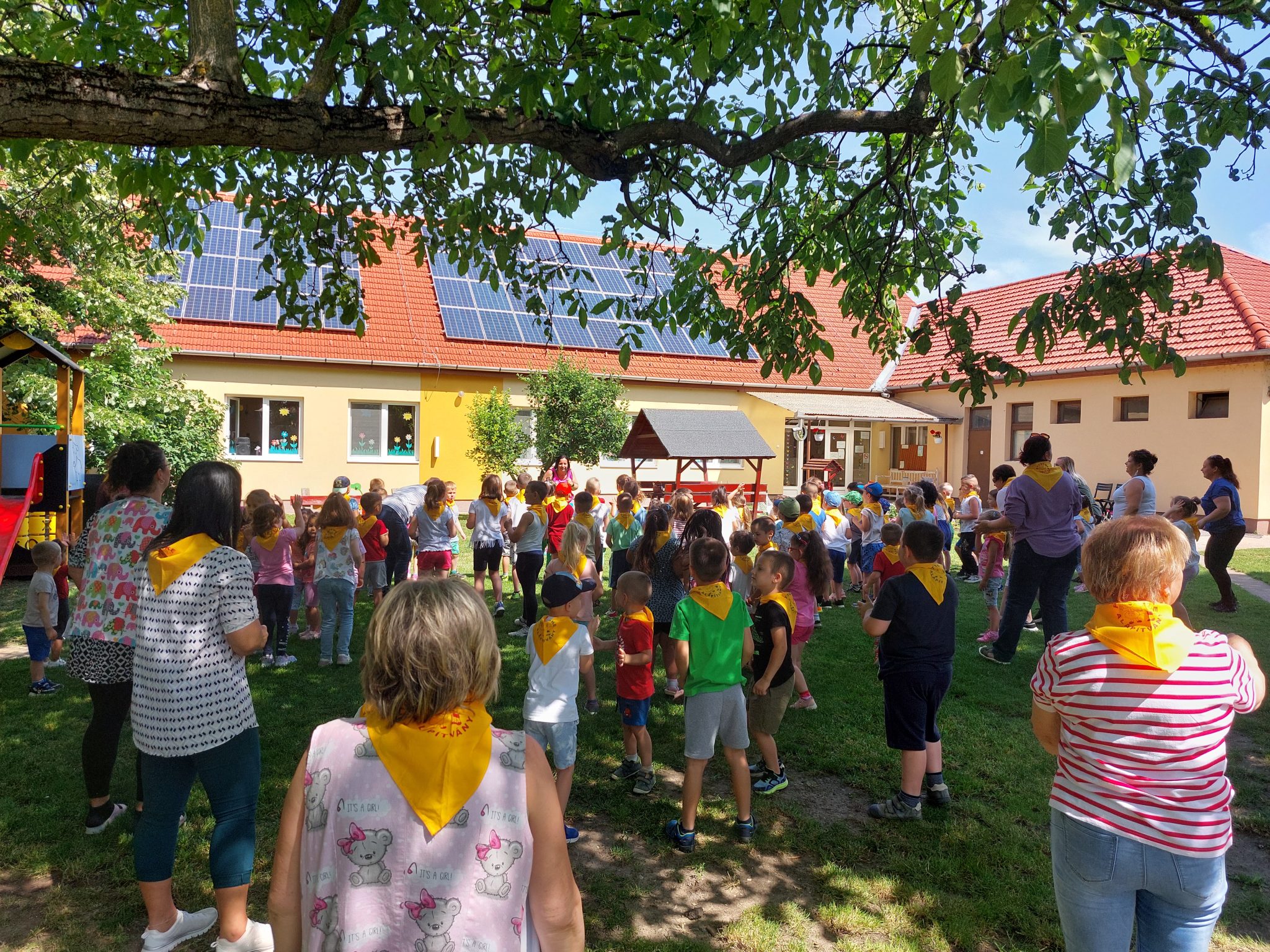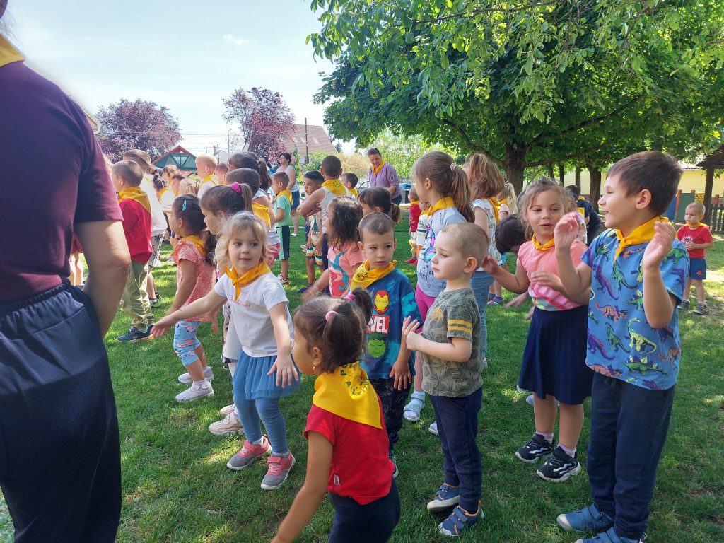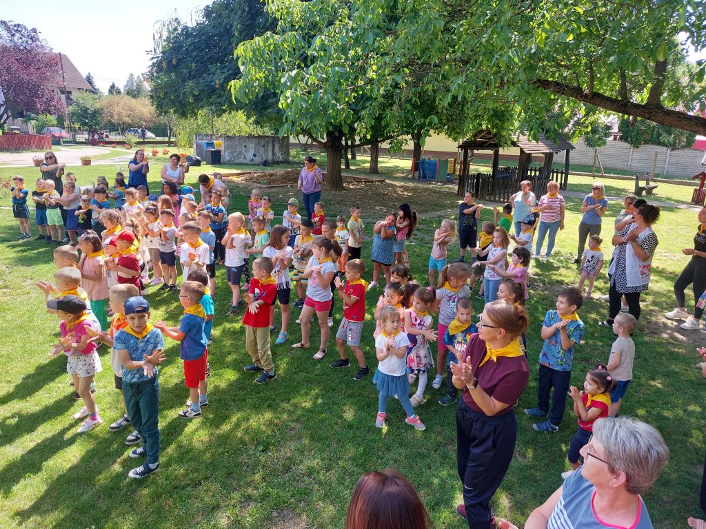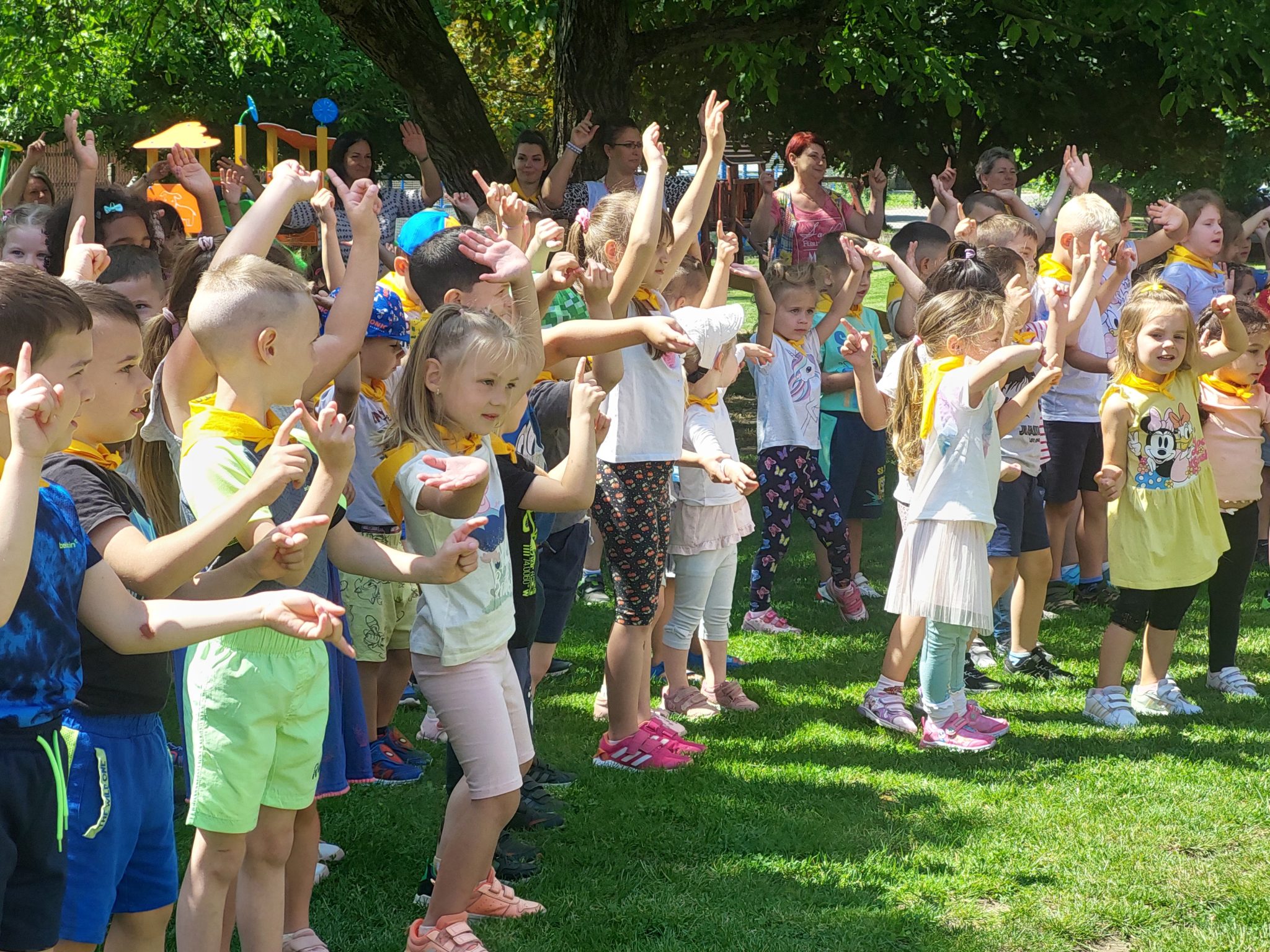 A gyerekek és a felnőttek az udvaron vettek részt a programban, ami nagyon jó hangulatban telt.