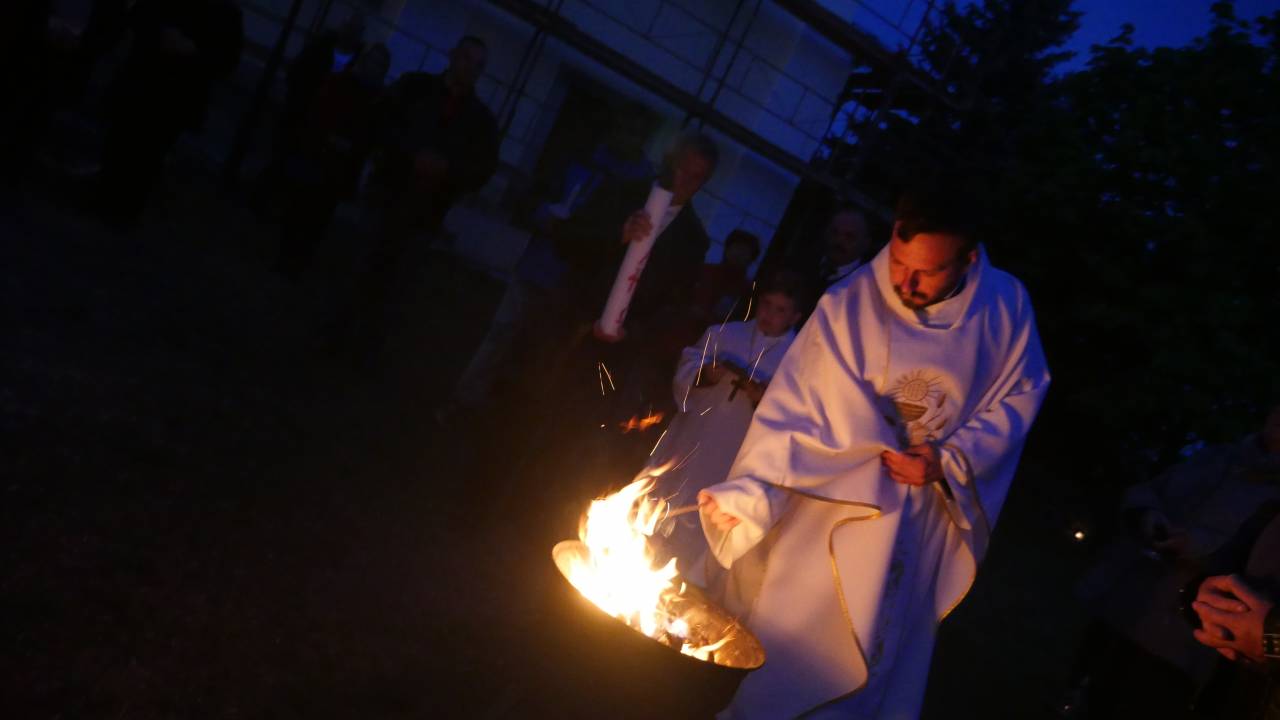 A templomon kívül tüzet raktak, melyet a pap megáldott, majd erről az új tűzről meggyújtották a húsvéti gyertyát, majd közösen vonult a gyülekezet a templomba. A szertartáson Krisztus feltámadását ünneplik a hívek, de egyben a fény a tavasz és az élet ünnepe ez. Pilinszky János így fogalmazza meg ezt a misztériumot a Harmadnapon című versében.