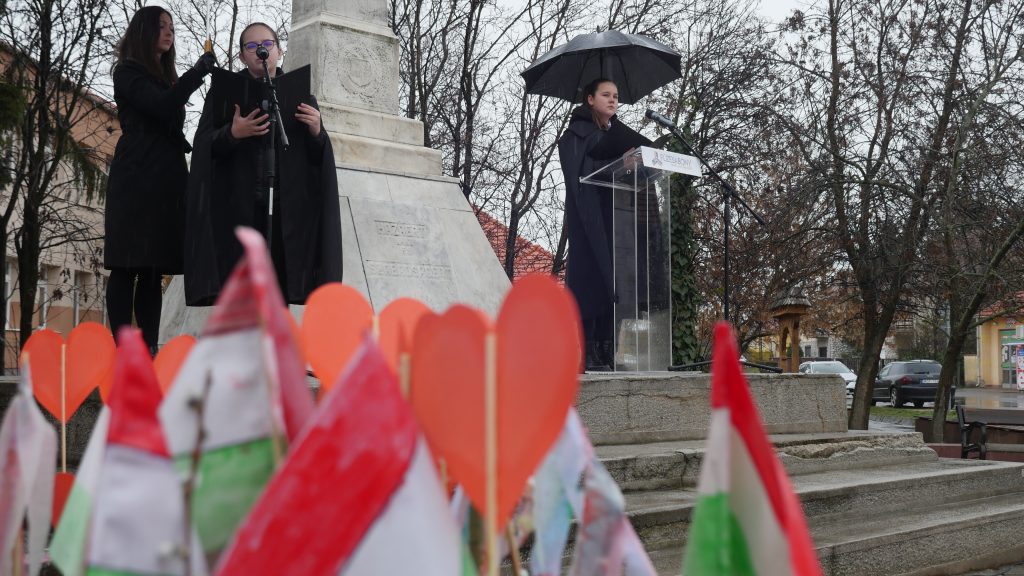 A Széchenyi István Katolikus Általános Iskola diákjai dallal, ünnepi műsorral emlékeztek a történelmi eseményekre és a forradalom hőseire.