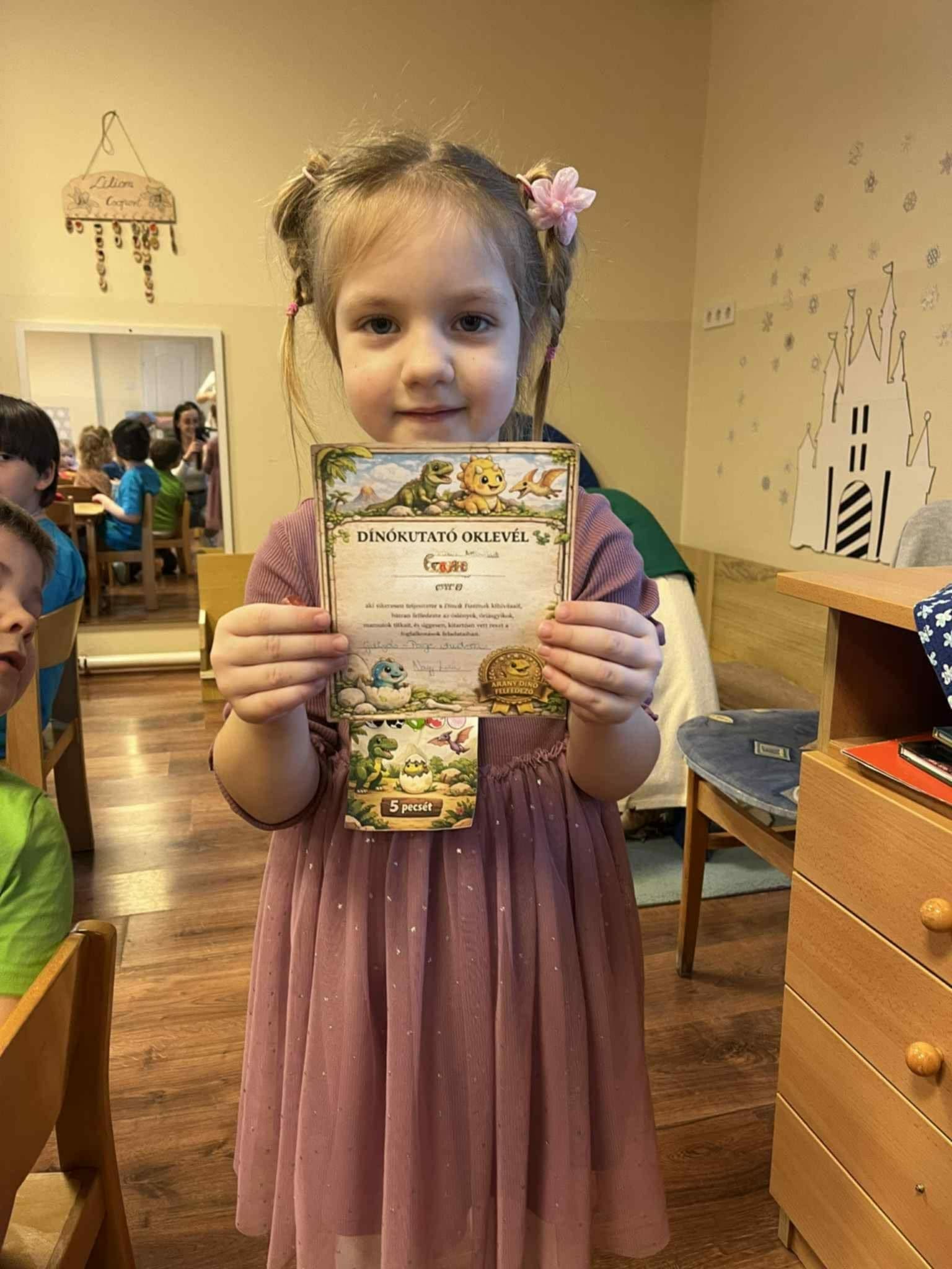A Dínó hét végén minden kis felfedező megérdemelt jutalomban részesült: névre szóló oklevéllel ismerték el kitartásukat és lelkes részvételüket. A program nemcsak ismereteket adott, hanem rengeteg mosolyt, közös nevetést és felejthetetlen pillanatot is hozott a Liliom csoport életébe – hiszen a gyermekek egy számukra igazán izgalmas, fantáziát megmozgató világot fedezhettek fel együtt.